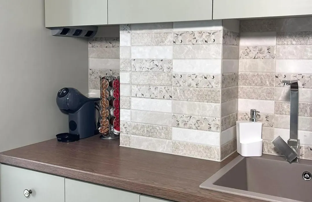 Eine Küche ist in den Zimmern des Apartments Light-Filled Lofts In Byzantium Kalamaria vorhanden. Die Unterkünfte ist in unmittelbarer Nähe von der Bushaltestelle Casa Bianca.
